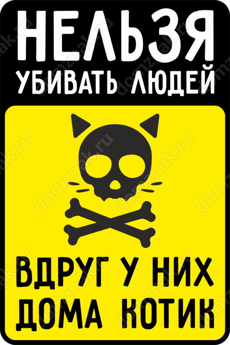 Табличка «Нельзя убивать людей вдруг у них котик»